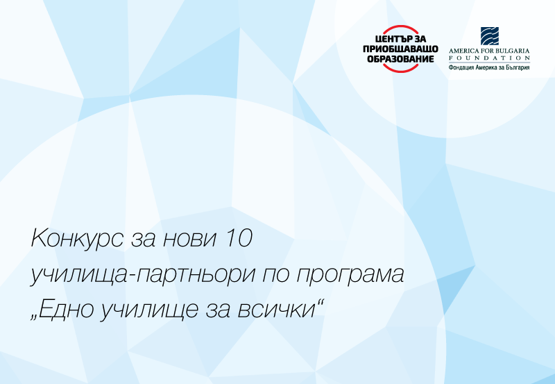 Център за приобщаващо образование обявява конкурс за нови 10 училища партньори по втора фаза на програма „Едно училище за всички“.