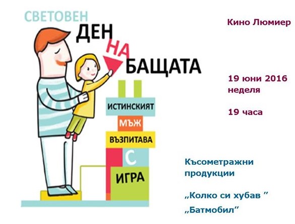 Под мотото „Ела с баща си на кино!” НДК се включва в нея. На 19 юни (неделя) в кино „Люмиер” от 19:00 часа ще има прожекция на късометражните продукции „Колко си хубав” и „Батмобил”.