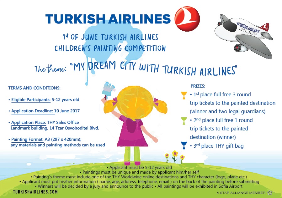 По повод 1 юни – Деня на детето, Turkish Airlines обявява конкурс за детска рисунка „My Dream City with Turkish Airlines“ („Моят мечтан град с Turkish Airlines“) за деца на възраст от 5 до 12 години. Авиокомпанията е подготвила специални награди за първите двама победители – посещение до тяхната мечтана дестинация.