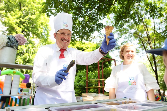 Сладоледа раздаваха председателят на настоятелството на фондацията Максим Бехар, членът на настоятелството Георги Камов и изпълнителният директор Иванка Шалапатова.