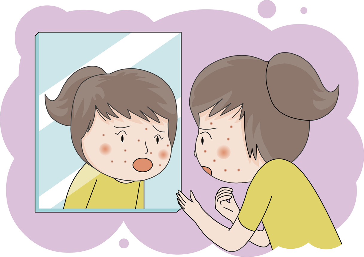 Пъпки, черни точки, зачервявания се явяват не само по лицето, но и по гърба, шията и деколтето. Увеличават се и се възпаляват преди изпити и по време на сесия, заради стреса, по време на менструационния цикъл. Състоянието се влошава от така наречените „бързи храни“, неправилна хигиена и неподходяща козметика.