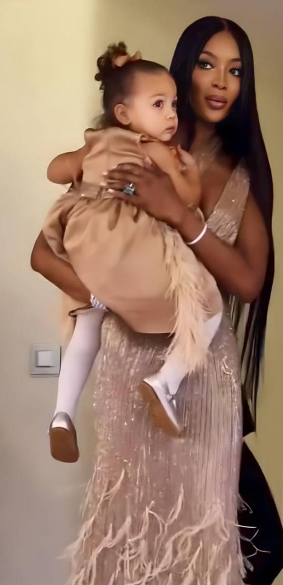 Моделът се появи на корицата на изданието за март 2022 г. на британския Vogue заедно с 9-месечната си дъщеря и разказа пред списанието, че отдавна е мечтала за дете. Тогава бебето беше снимано в гръб и лицето му не се виждаше. В продължение на една година и половина, на малкото снимки , които  Наоми публикува в профила си, лицето на бебето не се виждаше.