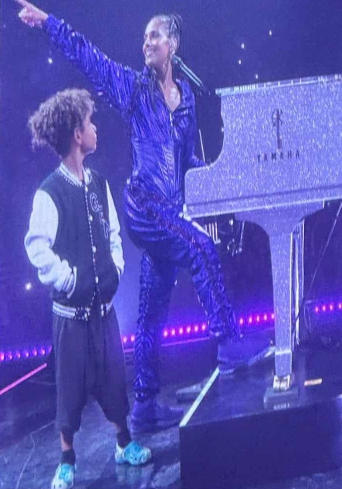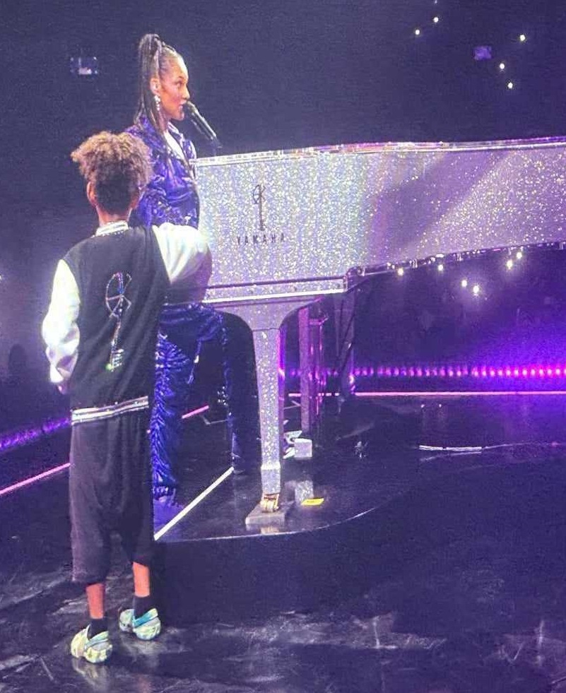 42-годишната Алиша Кийс си спечели нов бодигард. Съпругът на певицата, рапърът Swizz Beatz, публикува трогателни снимки в социалните мрежи, на които 8-годишният им син Дженезис стои на сцената и пази звездната си майка, която в този момент свири на пиано.