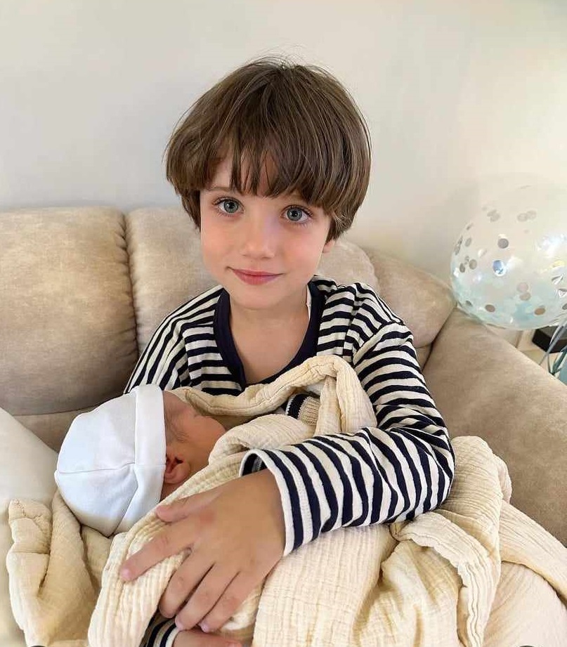 Батко Макси гушка новородения си брат. Снимка: Instagram