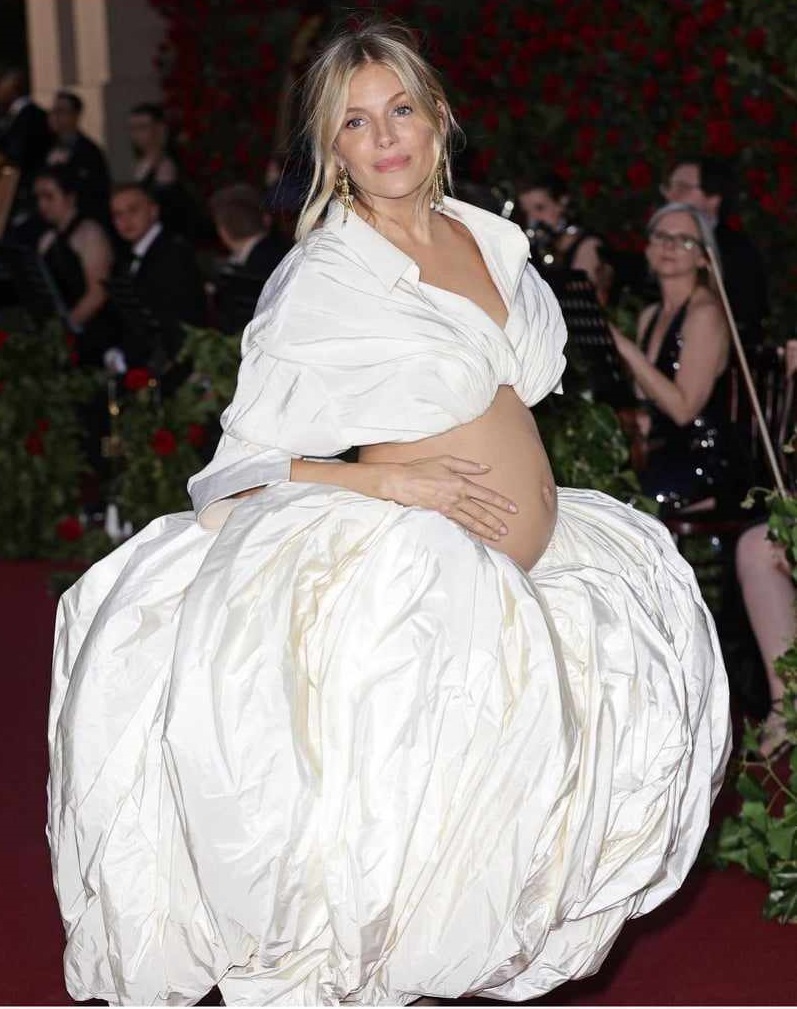 Сиена, която очаква момиченце от партньора си Оли Грийн, привлече вниманието с екстравагантно визия - бяла риза и и обемна пола.