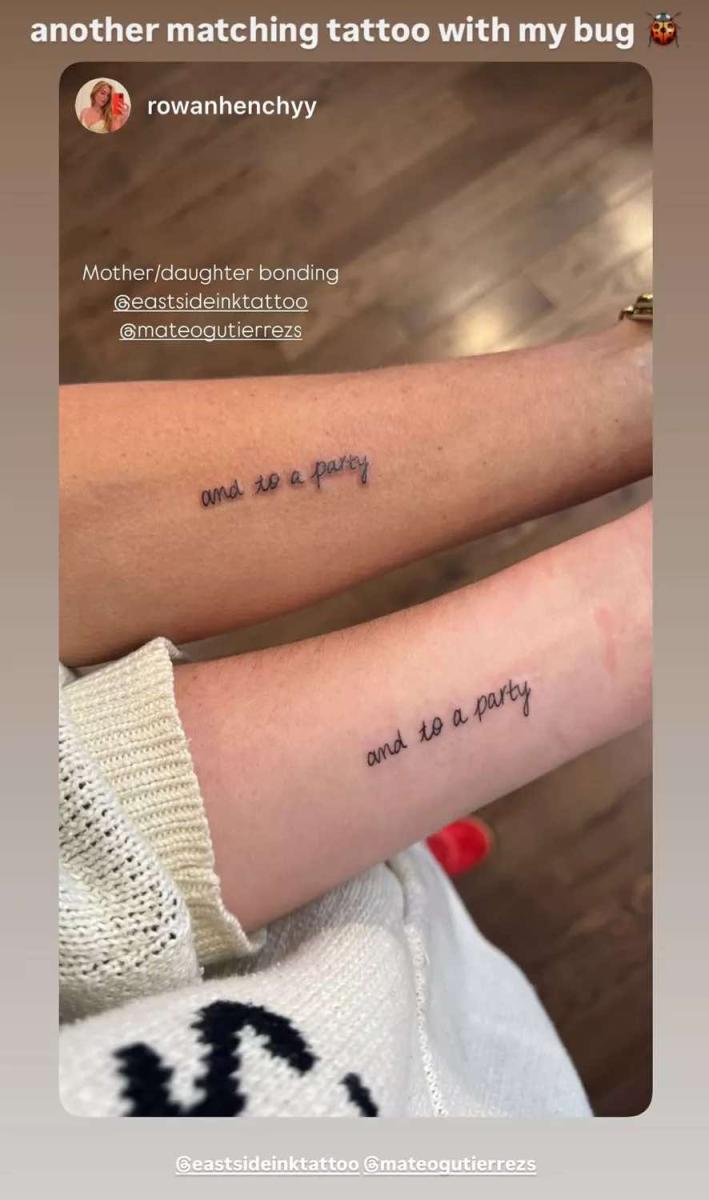 Актрисата и Роуан, която е най-голямата дъщеря на Шийлдс и съпруга ѝ Крис Хенчи, споделиха едновременно в своите истории в Instagram снимки от новите си придобивки. Татуировките са на предмишниците им и гласят „и на парти“ - фраза, която Брук написа сама и в сценария за филма си.