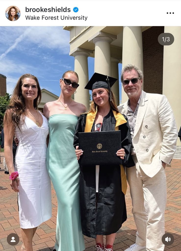 Брук Шийлдс отпразнува важно събитие в живота на по-голямата си дъщеря. 59-годишната актриса сподели няколко сладки семейни снимки в своя Instagram от дипломирането на дъщеря си Роуан в университета Уейк Форест. На снимките гордата майка позира до 22-годишната абитуриентка, съпруга ѝ Крис Хенчи и по-малката ѝ дъщеря Гриър, която е на 19 години.