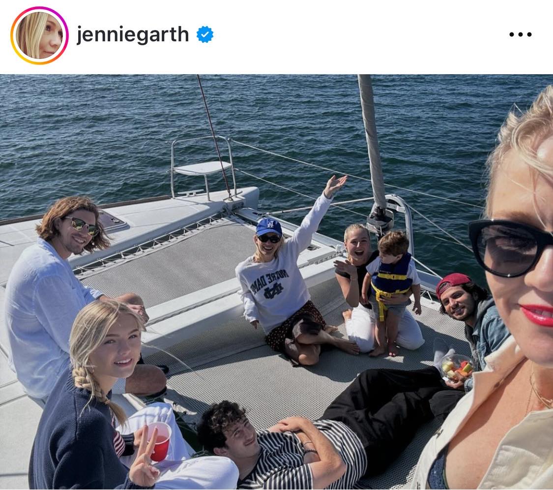 Джени Гарт и Питър Фачинели запечатаха приятелството си с ден, прекаран на лодка. Седмица след като 52-годишната актриса разкри, че бившата двойка, която се ожени през 2001 г. и се раздели през 2012 г., са вече „официално приятели“ в нейния подкаст I Choose Me, 50-годишният Фачинели организира разходка с лодка, на която бяха новите им семейства, както и техните три дъщери Лука - на 27 години, Лола – на 21, и Фиона - на 17.