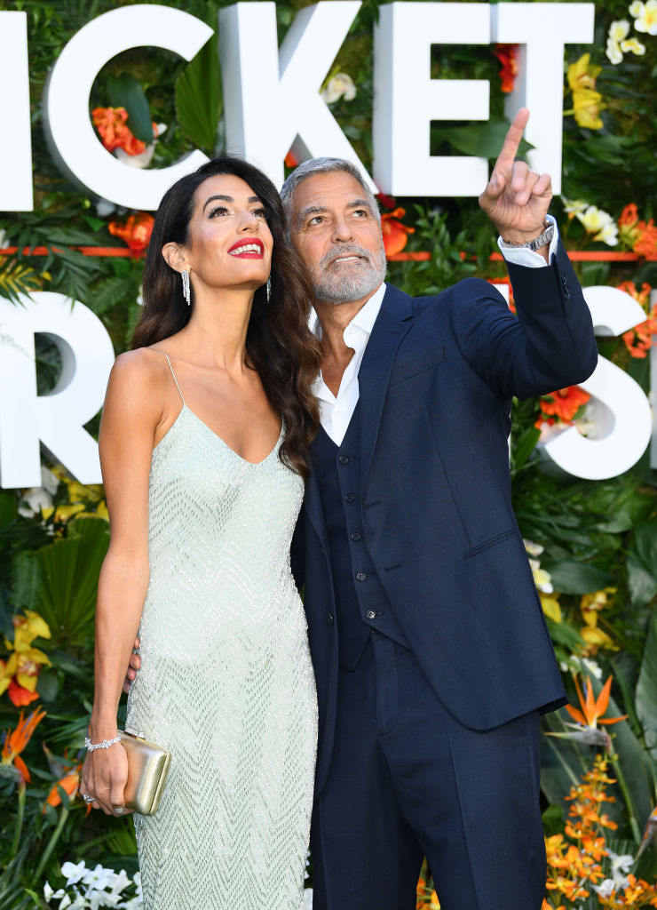 Амал се усмихна до нея, изглеждайки безупречно в копринена ретро рокля на френския дизайнер Alaia и широкопола сламена шапка. Снимките на Daily Mail можете да видите тук.