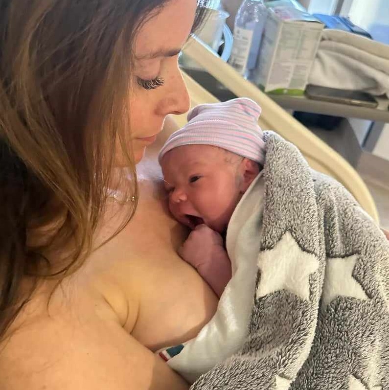 Те сами съобщиха щастливата новина в социалнитте мрежи и пуснаха първите снимки на новороденото в прегръдките на майка си.