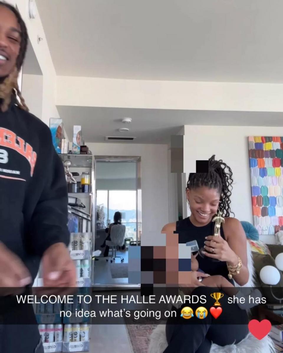 Хали Бейли може да е загубила при раздаването на наградите за кино и музика тази година, но спечели най-важната от всички. 23-годишната звезда от „Малката русалка“ бе изненадана с приз от приятеля си DDG и татко на детето им за „Най-добра майка“. 26-годишният рапър показа наградата и радостта на Бейли при получаването ѝ в Snapchat.
