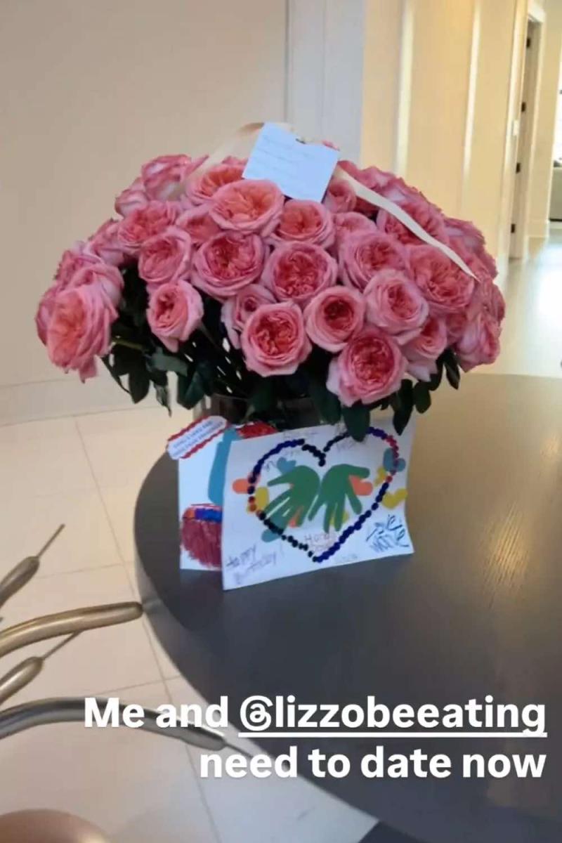 „Благодаря ти, скъпа! Дъщеря ми ми купи тези балони“, показа Карди във видеото. „И тези цветя“, добави тя, радвайки се на красивия букет от розови рози с бележка върху тях.