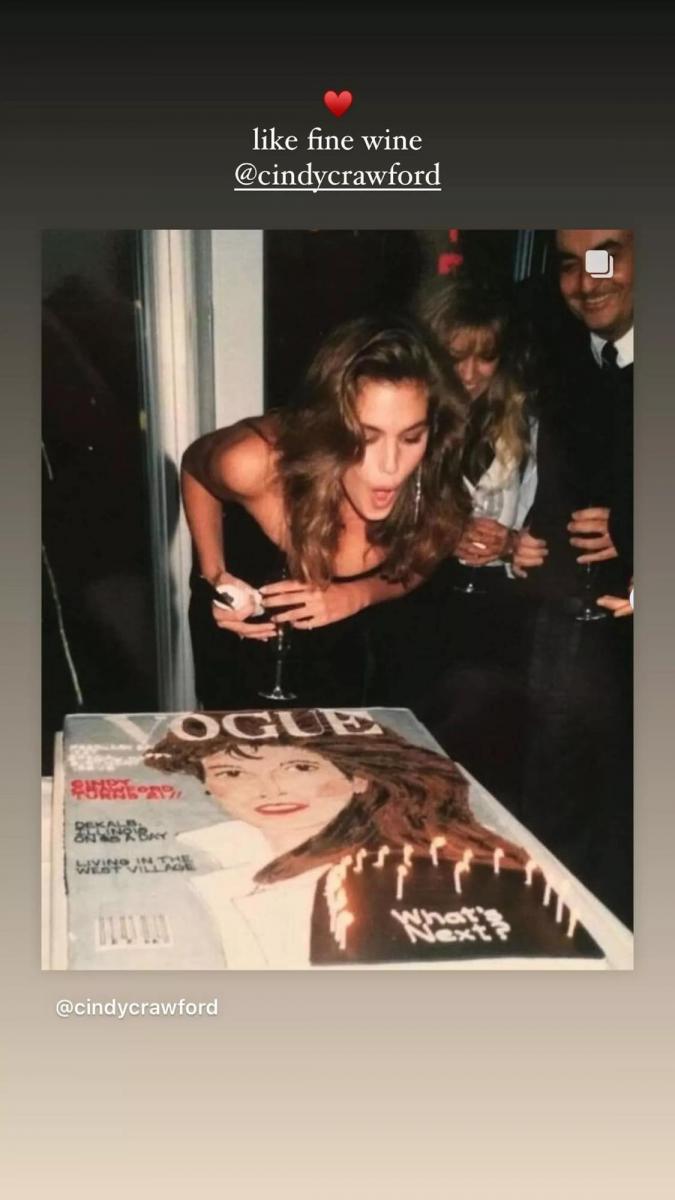 „Като хубаво вино“, написа Кая в своята история в Instagram, споделяйки снимката, публикувана първоначално от Крауфорд, на която тя духа свещи върху торта за рожден ден.