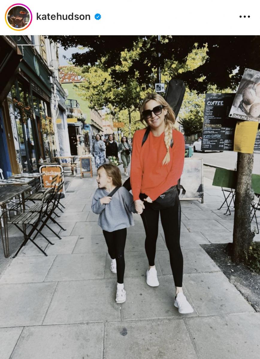 Кейт Хъдсън си прекара весело по време на английското семейно пътешествие. В компанията на своята 5-годишна дъщеря Рани Роуз и годеника си Дани Фуджикава, 45-годишната актриса показа в своя Instagram как могат да се забавляват с простички неща като хапване и разходки.