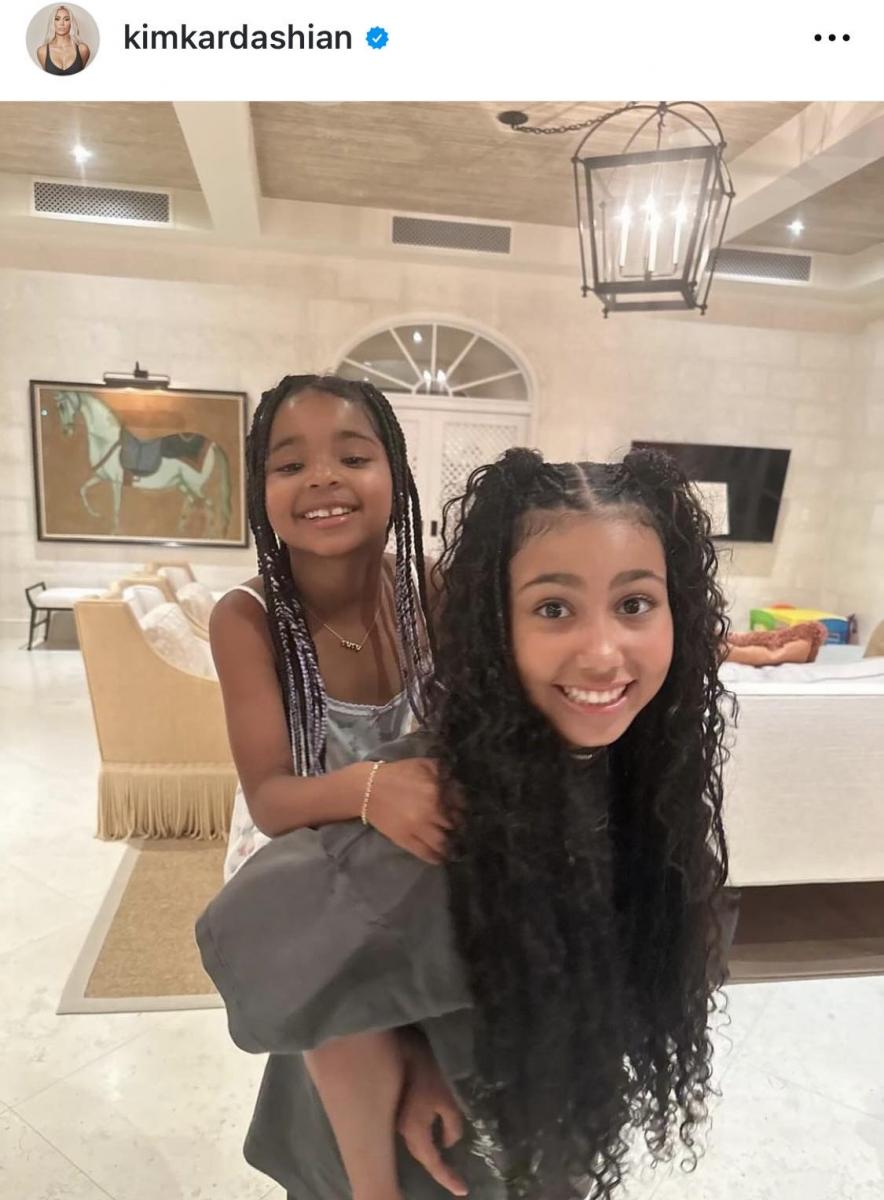 В публикацията, озаглавена „Пролетна ваканция“, най-голямата дъщеря на Кардашиян, Норт Уест, която е вече на 10, беше заснета да се усмихва, докато носи на гръб своята братовчедка Тру Томпсън. Майката на Тру – Клои, също се включи в семейната почивка.