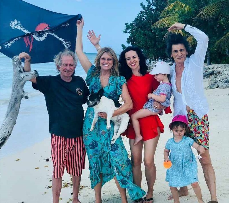 Рождения ден и годишнината двойката отпразнува на брега на океана, заобиколена от приятели: колегата на Кийт от Rolling Stones Рони Ууд и съпругата му Сали, както и техните деца - 7-годишните дъщери близначки Грейси Джейн и Алис Роуз.