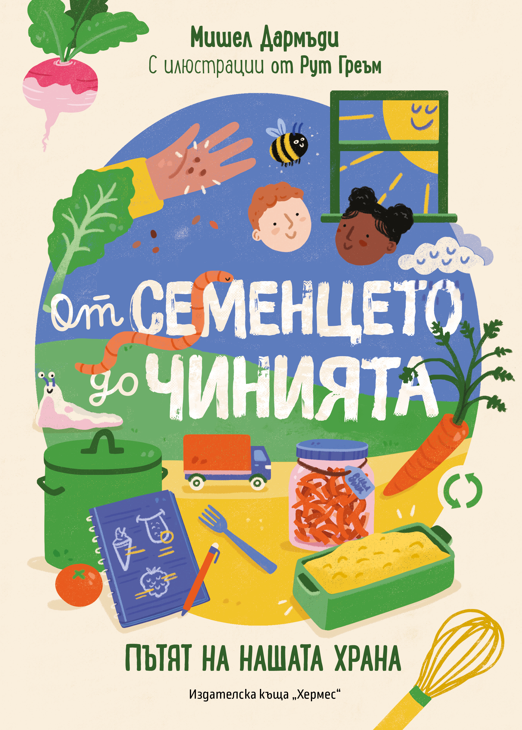 Как храната стига до чинията? Откъде идва? Как расте? Как пътува по света, за да стигне до теб? А щом вече е тук - как я приготвяме и хапваме? „От семенцето до чинията“ от Мишел Дормъди и с илюстрации от Рут Греъм (издателство „Хермес“) ще ви поведе на вълнуващо пътешествие - от семенцето в почвата, през кухнята, чак до масата. Ще проследите всяка стъпка от пътя на храната! Ще научите как тя се отглежда, купува и приготвя. И не само! Ще разберете също как това, което ядем, влияе на нашата планета. И ще надникнете в домовете на хората по света, за да видите как те споделят храната си. В книгата ще откриете още съвети за готвене и лесни рецепти, които може и децата да приготвят. Има и забавни проекти, любопитни истории и невероятни факти, защото храната свързва хората по целия свят!