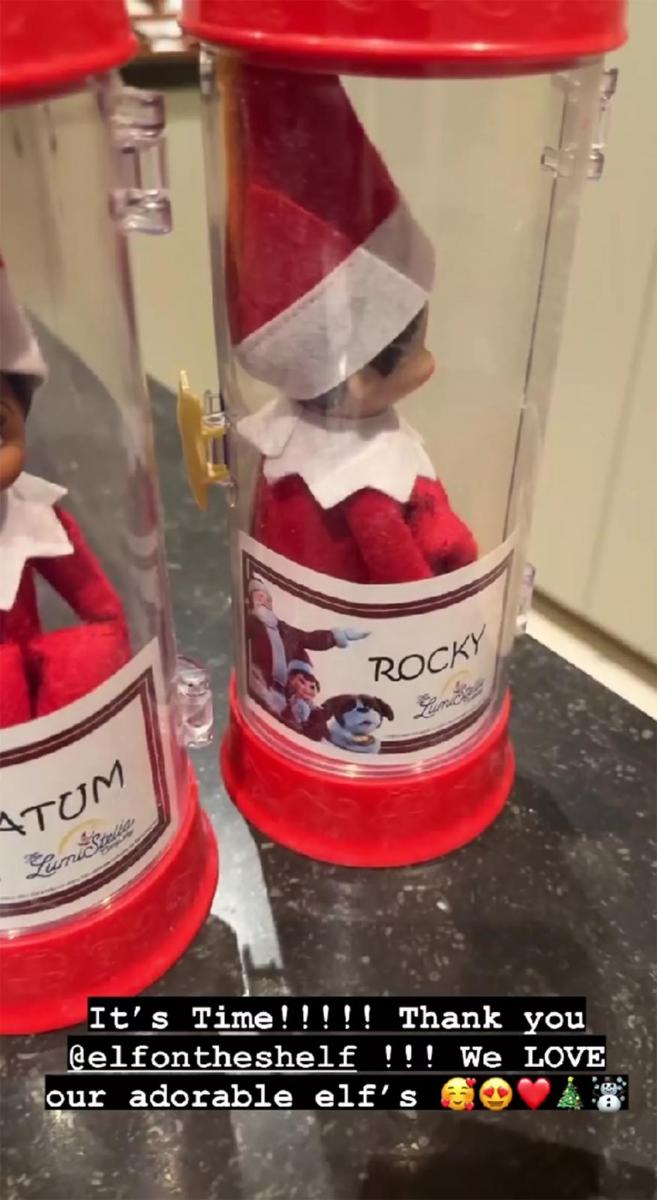 „Тук са Мейсън, Пенелопе, Норт, Райън, Сейнт, Дрийм, Чикаго, Сторми, Тру, Псалм, Еър, Тейтъм и бебето Роки“, написа тя, докато течеше хита на Марая Кери All I Want For Christmas Is You.