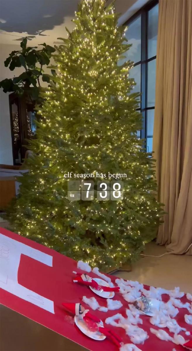 Първа сподели бърз поглед към коледната си украса в своята история в Instagram Кортни. В първата си публикация, която беше на фона на музика от филма „Елф“, тя показа осветената коледна елха и ръчно направена украса с елфи и шейна.