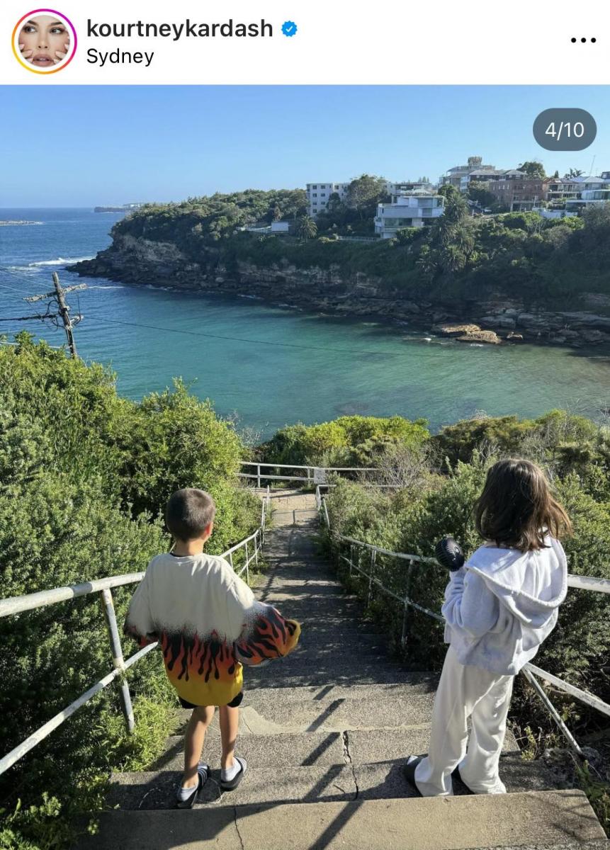Кортни Кардашиян Баркър сподели спомени от семейното им пътуване до Австралия. 44-годишната звезда от семейство Кардашиян публикува снимки в своя Instagram от неочакваната ваканция в Сидни, когато тя и децата придружиха Травис Баркър по време на турнето на групата му Blink-182 в града. И така съчетаха неговата работа със семейните спомени.