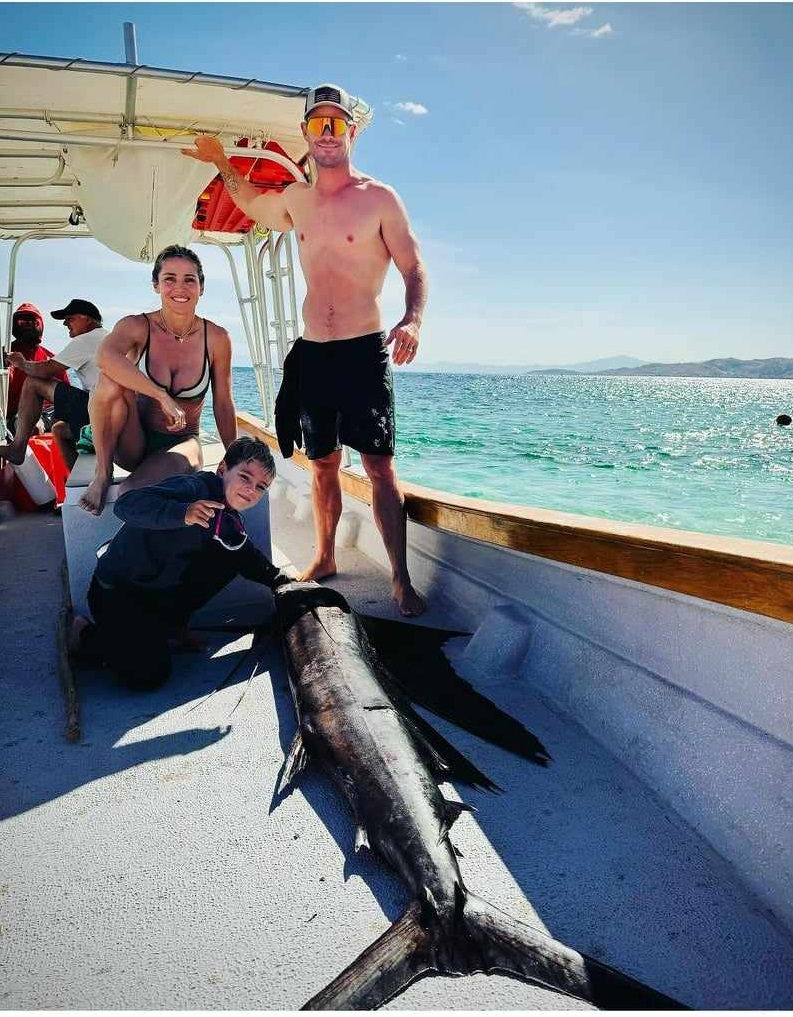 Заедно с трите си деца - дъщерята Индия и близнаците Тристан и Саша, те прекарват време на плажа, возят се на лодка, ходят и на риболов.