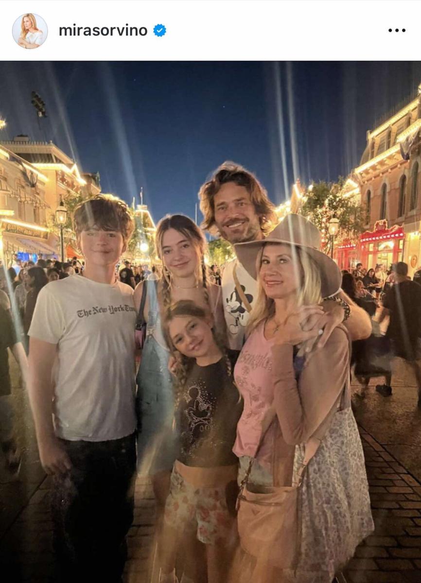 Мира Сорвино и Кристофър Бекъс с част от децата си.