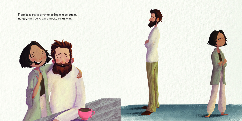„Понякога мама и татко говорят и се смеят. Но друг път се карат и после си мълчат. След което всичко си е по старому. Докато един ден не е…“