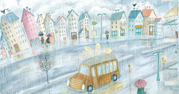 „Не разбирам как човек може да е толкова радостен, когато навън вали“ – чуди се Софи. Гледа през прозореца и брои безкрайните капки, падащи от небето. Толкова е отегчена. Дори на плюшеното ѝ зайче му е скучно. Изобщо не иска да стои с възрастните.