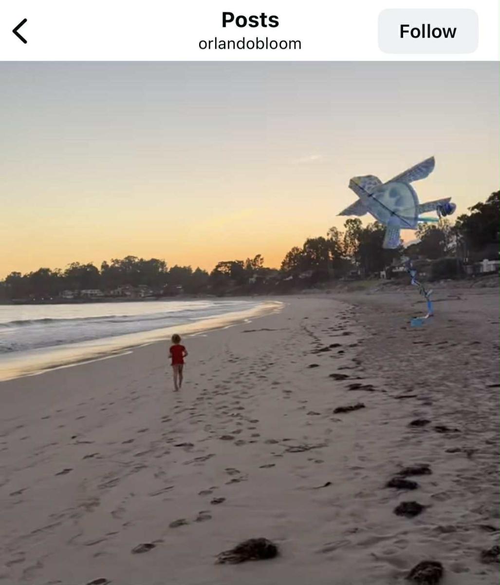 Дъщеричката на Орландо Блум с хвърчило на плажа.