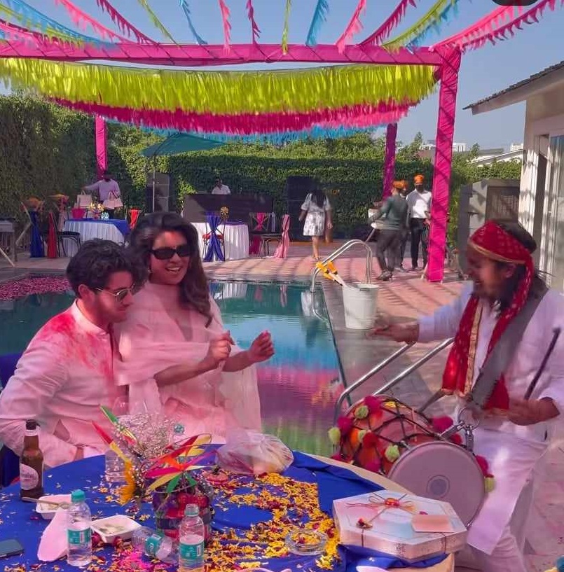 Приянка Чопра отпразнува традиционния индийски празник Холи у дома със съпруга си Ник Джонас, двегодишната дъщеря Малти Мари и многобройни роднини.