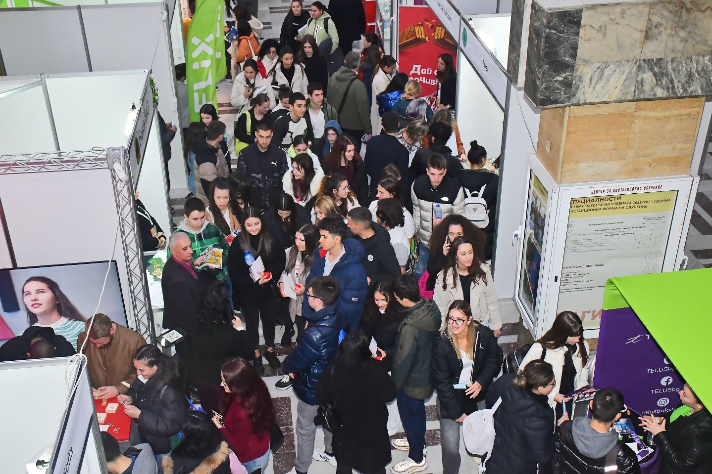 110 щанда на 89 компании и организации от бизнеса и държавната администрация запълниха фоайето на УНСС.