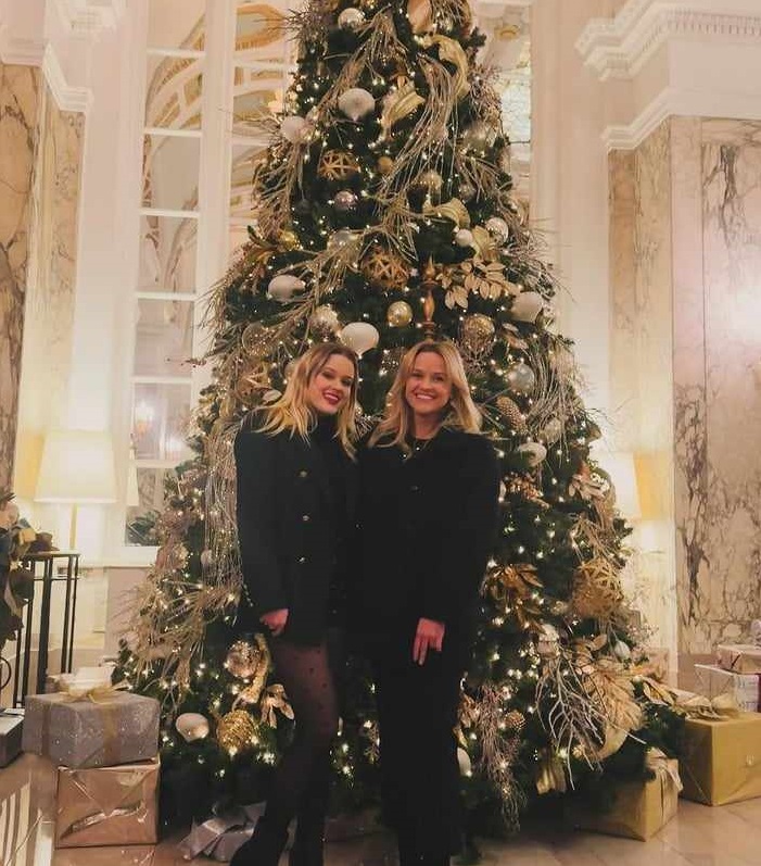 Рийз заедно с дъщеря си пред елхата. Снимка: Instagram