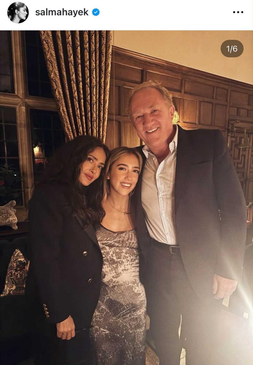 Салма Хайек със съпруга си и порасналата им дъщеря.