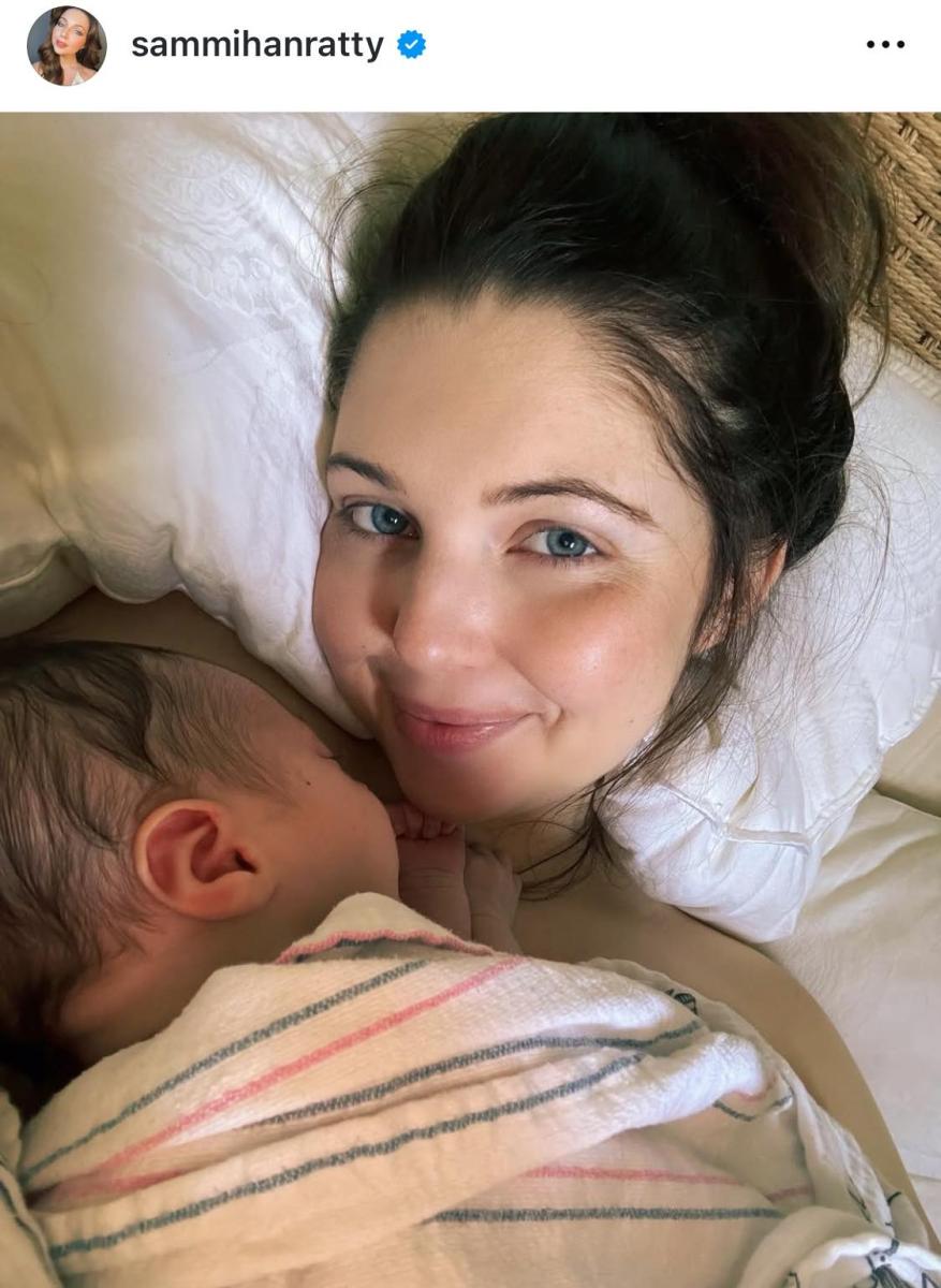 Саманта Ханрати обожава живота си като нова майка. 29-годишната актриса говори за първи път след раждането на малкия си син през декември 2024 г.