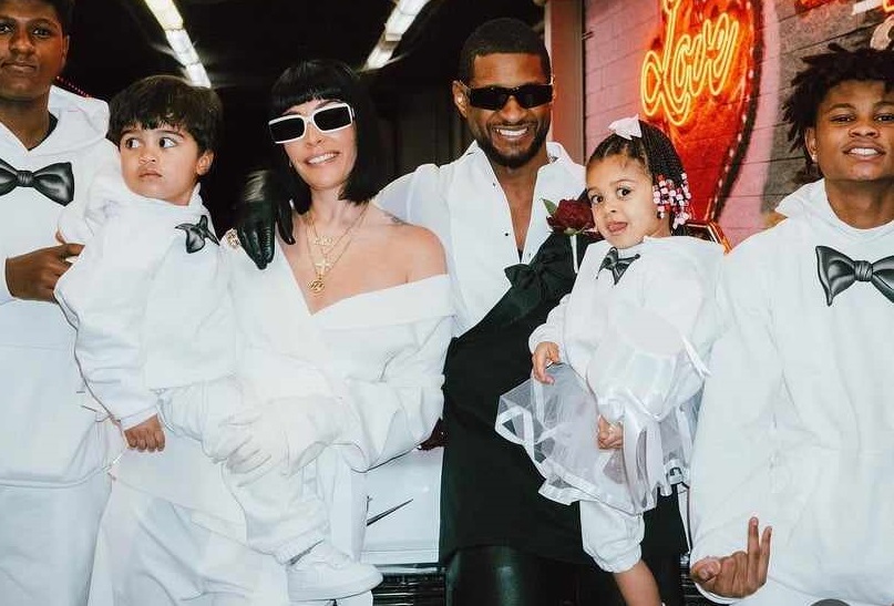 Снимките от церемонията в Лас Вегас включваха както общите деца на двойката - дъщерята Суверен Бо, родена през 2020 г., и синът Кастрело, роден през 2021 г. - така и порасналите синове на Ъшър от предишния му брак с Тамека Фостър – 16-годишната Ъшър V и 15-годишният Навийд Ели.