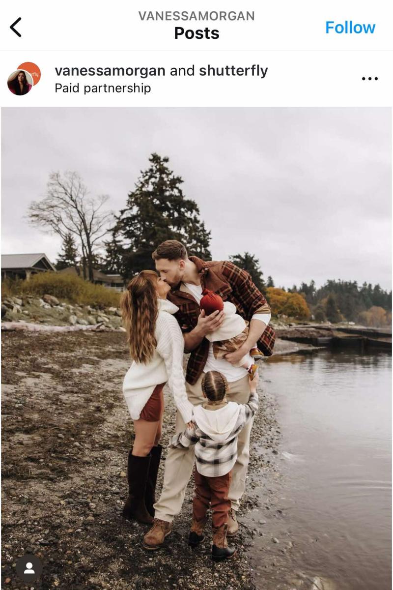 Ванеса Морган със съпруга си и децата им във фотосесията за коледната им картичка.