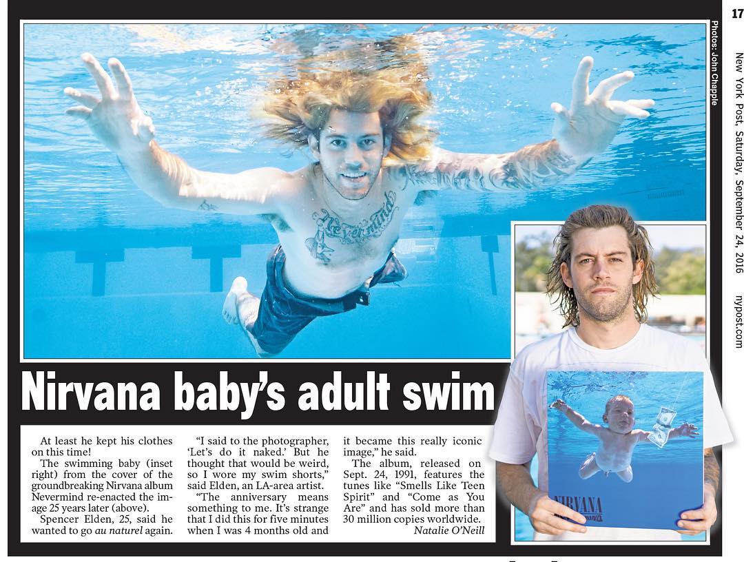 Преди 25 години, когато е на 4 месеца, Спенсър Елдън се снима за обложката на албума Nevermind на легендарните Nirvana. Четвърт век по-късно той реши да повтори знаменитата фотография, пише letidor.ru.