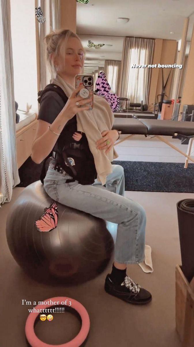 34-годишната хубавица сподели сладка снимка в своя Instagram Story, на която показа новороденото и съпруга си Адам Ливайн, но все пак прикри лицето на бебето.