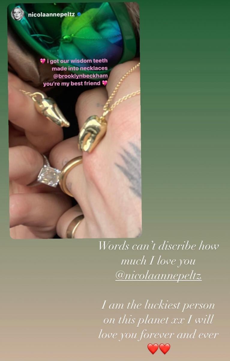 Бруклин Бекъм и Никола Пелц се сгодиха през юли 2020 г., но временно отложиха сватбата, заради ограниченията покрай пандемията.