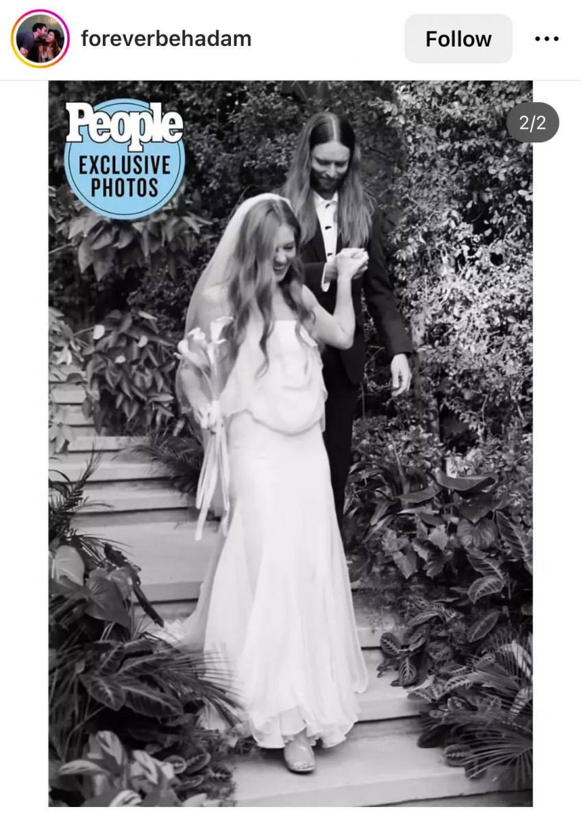 За повода булката имаше две рокли, с които бе заснета в дома им в Лос Анджелис и навън.