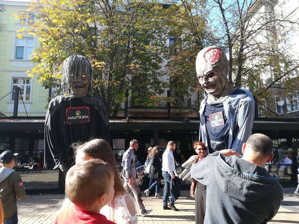 Двуметрови фигури с лица на зомби се разхождат из пешеходната зона на столичния бул. "Витошка" не, за да стряскат малки и големи, а в очакване на Хелоуин, защото там наблизо за празника има устроен "Лабиринт на страха". На поканите, които зомбитата раздават, пише: „Входът е свободен, изходът е някъде там, след среща с духове, призраци и зомбита от другото измерение, писъци от дълбините на отвъдното. Всеки грешен ход може да е фатален!"