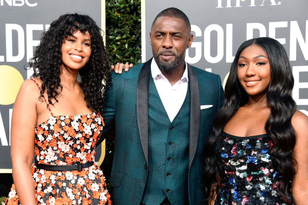 Идрис Елба с приятелката си Сабрина Доуър (вляво) и дъщеря си Исан Елба на наградите "Златен глобус" 2019. Снимка: Guliver / Getty Images