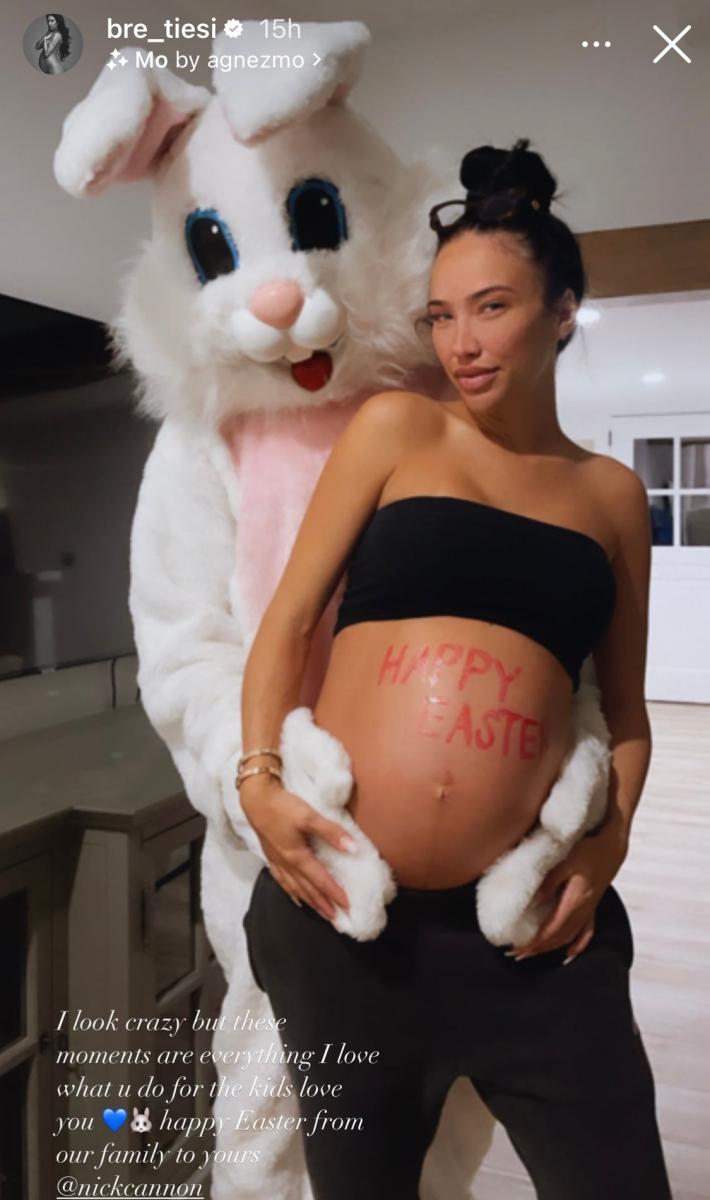 Ник Кенън и Брe Тиези имаха един много специален Великден. Двамата очакват първото си общо дете и отпразнуваха празника различно. Върху коремчето на бъдещата майка, с червено червило бе изписано „Честит Великден“, а Кенън изненада половинката си с костюм на великденски заек.