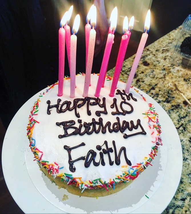 Тя изненада Фейт Маргарет с торта с 10 розови свещи и заедно с 2 години по-голямата ѝ сестра и таткото на момиченцата Кийт Ърбан, ѝ изпяха песен.