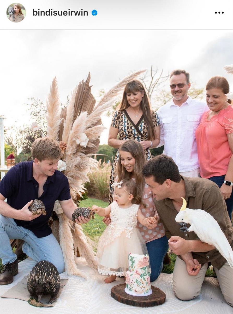 Дъщеричката на Бинди Ъруин и Чандлър Пауъл навърши 1 година и щастливите родители организираха тържество за първия й рожден ден напълно в стила на семейството – на полянка и в компанията на животните от австралийския зоопарк, където и двамата работят.