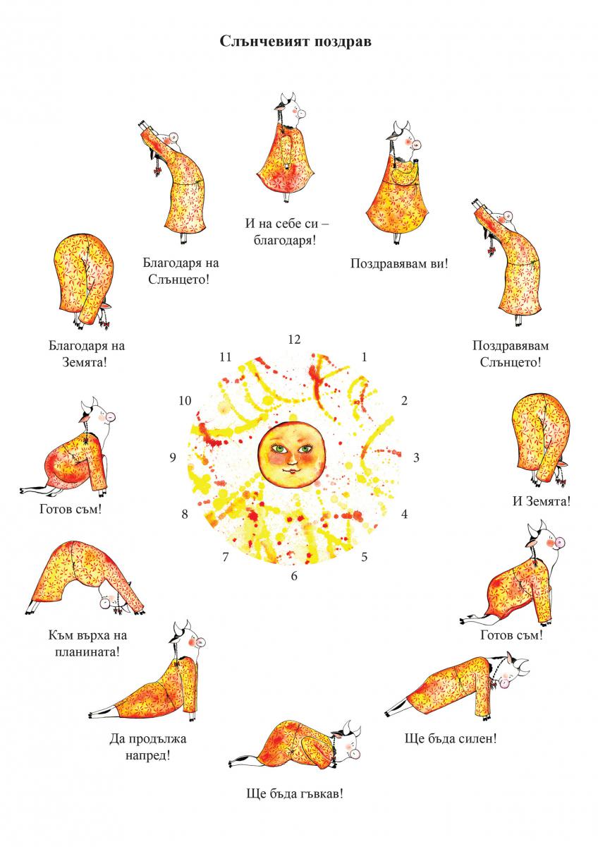 Има специална песен за книжката, песен за раздвижване, за слънчевия комплекс, за Индия, за благодарността и др. Предстои да ги запишем в студио с деца от групата ми „Тананикаща йога“ и да заснемем с тях клипчета.