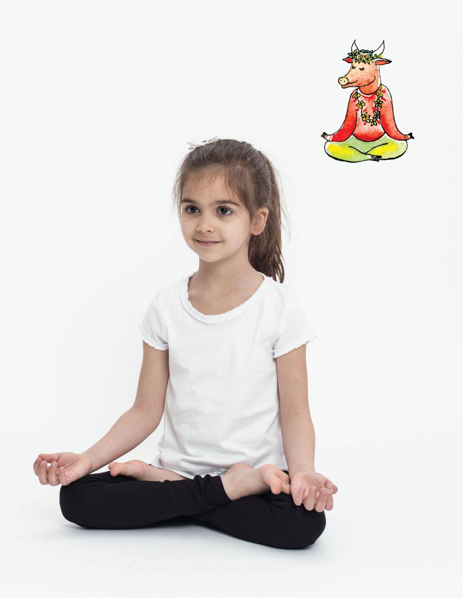 Съдържа над 30 йога асани, дихателни упражнения, релаксация, положителни утвърждения и 9 песнички, подбрани според нуждите, възможностите и интересите на децата от 3-12 г.