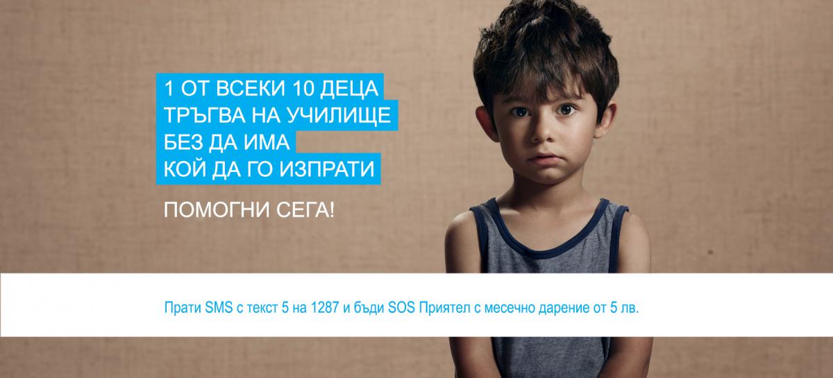 SOS Детски селища България стартира кампания „1 от всеки 10 деца тръгва на училище, без да има кой да го изпрати“, за да насочи вниманието върху една много тревожна статистика – 1 от всеки 10 деца расте само. И да привлече дарители в подкрепа на тези деца – децата, които са лишени от родителска грижа или които са в риск да я загубят – това са децата, за които Сдружение SOS Детски селища България се грижи.