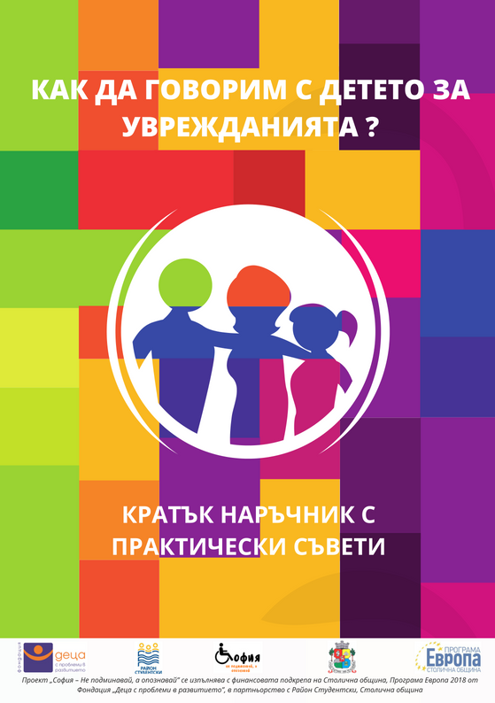 Затова и Фондация „Деца с проблеми в развитието“ издаде наръчник с полезни за нас, родителите, съвети в рамките на проект “София – не подминавай, а опознавай” - информационна кампания, която предлага помощ на родители на деца в норма за това как да общуват коректно с децата си за различията на хора със специални потребности.