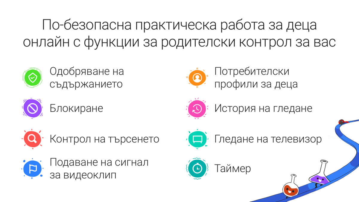 Важно е, че търсенето е безопасно - приложението предлага редица опции, които позволяват на родителите да контролират какво гледат малките и да използват разширените алгоритми за избор на съдържание, подходящо за тях.